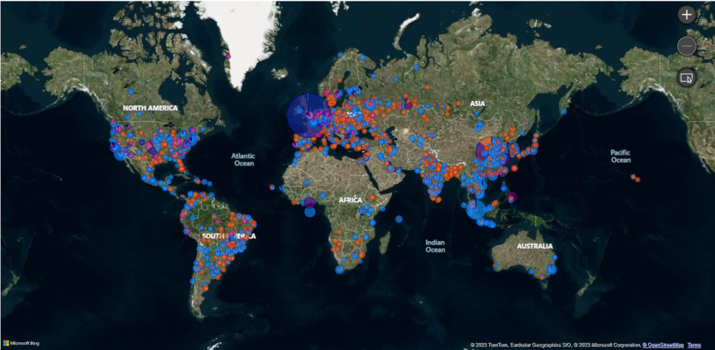 The beautiful heat map is back as well, with connections from the previously mentioned VNC attacker and the classic Zhengzhou traffic dwarfing their respective surroundings.