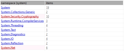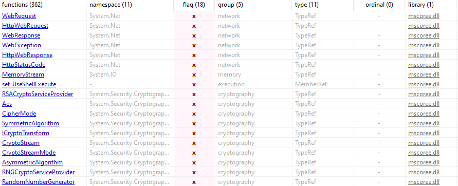 Thanks to the ever-handy CyberChef, it was pretty easy to pull this data out and actually see what it was loading. Unfortunately, it wasn’t anything particularly interesting. Mostly generic imports and assemblies you’d expect to see in this kind of malware.