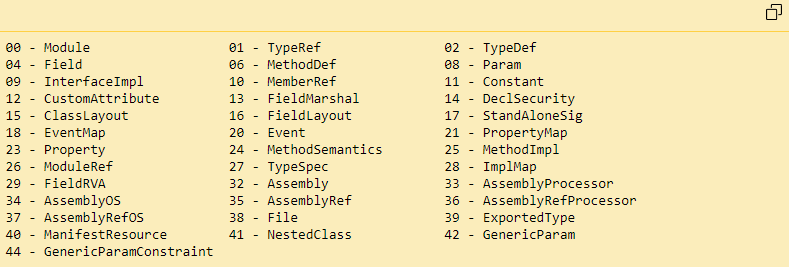 # Parse the #~ MetaData Table