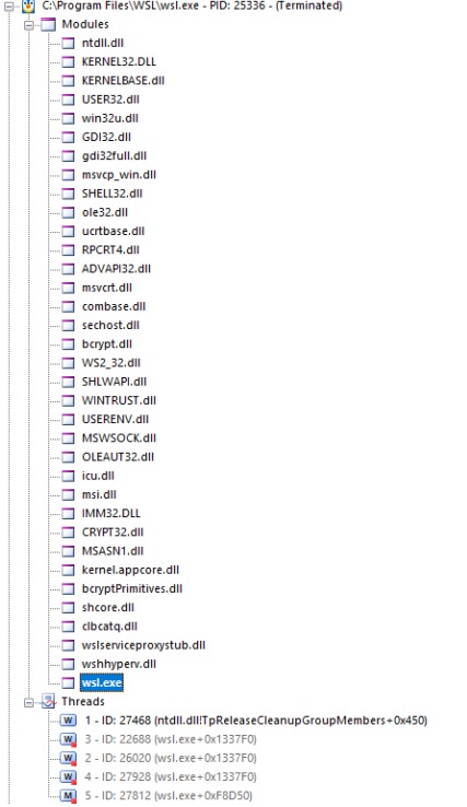 Selecting the correct process is necessary - there will be several WSL processes, so choose the one in the install folder