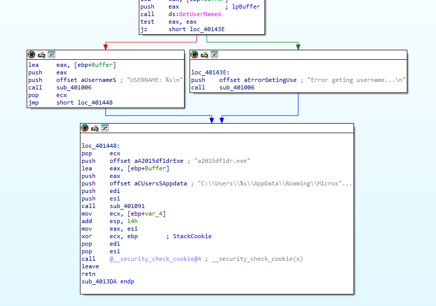 It drops a file named a2015df1dr.exe into the C:\Users\%USER%\AppData\Roaming\Microsoft\Protect directory.