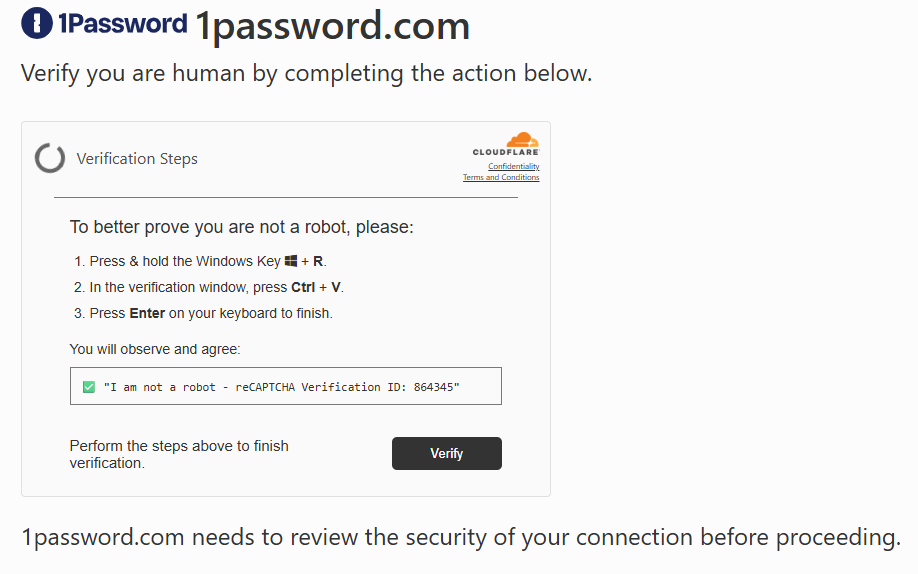 Clicking the ‘Verify’ button led to a standard ClickFix instruction set, which the user followed.